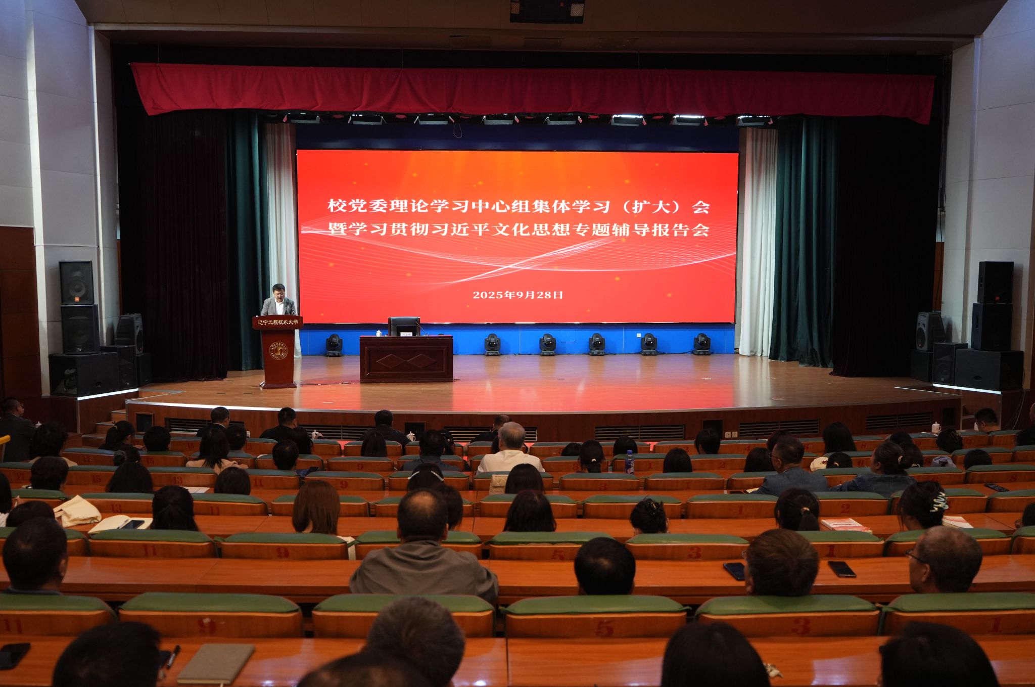 为深入学习领会习近平文化思想的重大意义、丰富内涵和实践要求,做好新时代新征程学校宣传思想文化工作,教育引导全校师生切实增强文化自信和文化自觉,为推进强国建设、民族复兴伟业凝聚奋进力量,2025年9月28日,学校召开校党委理论学习中心组集体学习(扩大)会暨学习贯彻习近平文化思想专题辅导报告会。会议邀请北京社会主义学院党组书记、分管日常工作副院长(正局长级)、北京市委统战部副部长祁金利研究员作专题辅导报告。校党委书记岑松主持会议。