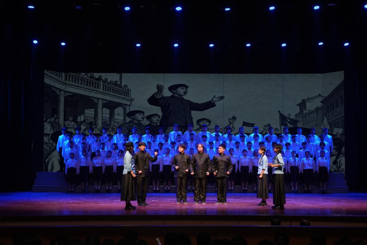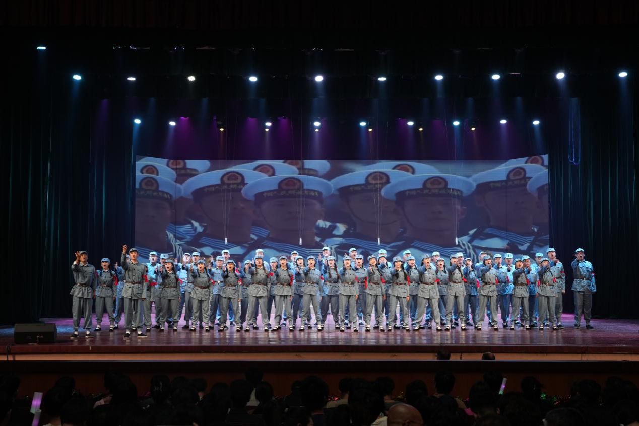 合唱比赛由网络传播和现场比拼两部分组成,网络传播部分已在前期完成,在排练期间由各学院自行录制排练视频,并在网上进行传播。现场比赛在雷鸣般的掌声中拉开帷幕,璀璨的灯光如星河倾泻,将整个礼堂映照得辉煌而庄严,青春的朝气与红色的信仰在此刻交相辉映。舞台上,各代表队以饱满的激情通过舞台短剧演绎着一幕幕红色经典,通过合唱展现红色精神,每一句歌词都铿锵有力、每一个动作都凝聚着深情,多媒体背景上历史画面的交织更让整个舞台成为了穿越时空的红色长廊。台下,年轻的学子们眼中闪烁着感动的泪光,随着熟悉的旋律轻声跟唱。评委席上,老师们频频点头,被这既厚重又充满创新的艺术呈现深深打动。这一刻,比赛已超越竞技本身,成为一堂流动的、直抵人心的思政课,一次精神的洗礼与信仰的共振。
