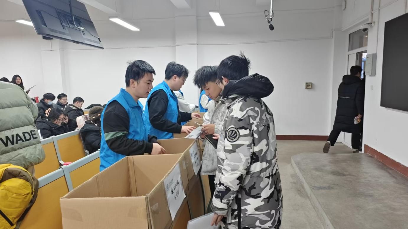 考试期间,学校精准对接考生需求,升级服务保障举措。统一安排10余辆“考研送考直通车”接送学生往返考点,全程保障考生安全、准时抵达考场。同时,在校园内为各学院考生设立12个“暖心服务站”“能量补给站”,不仅提供免费热水、手机存放箱、应急药品等基础物资,还贴心准备了咖啡、巧克力、面包等能量食品,让考生在候考、午休期间感受到家一般的温暖。每场考试前,全体学生工作人员在考点外列队送考,以亲切的问候、温暖的拥抱、坚定的眼神为考生加油鼓劲,传递学校的关怀与期许,提振考生应试信心。