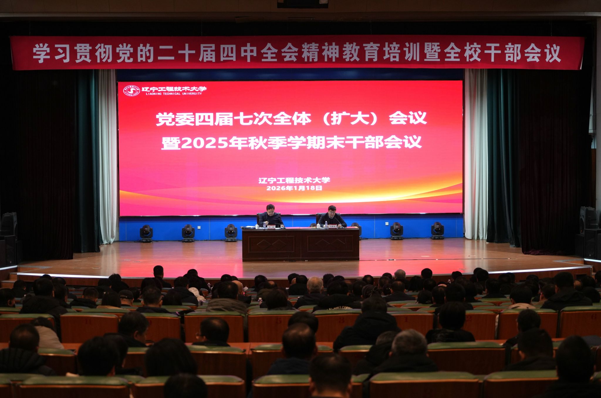 1月18日,学校召开党委四届七次全体(扩大)会议暨2025年秋季学期末干部会议。会议全面总结2025年学校事业发展成效,深入分析当前发展形势,研究部署寒假期间重点工作。校党委书记岑松作工作报告,校党委副书记、校长马修泉主持会议并讲话。