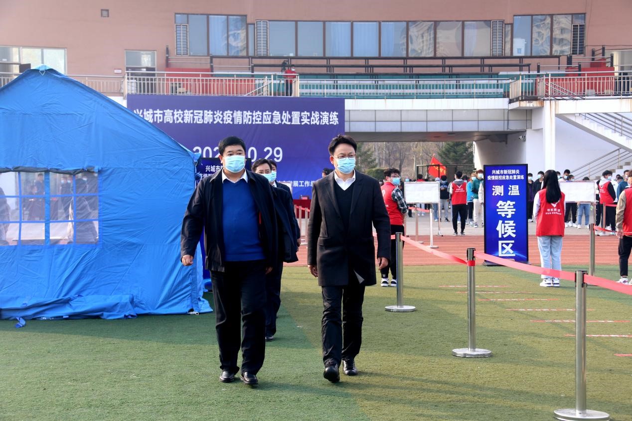 本次实战演练由兴城市卫生健康局、辽宁工大葫芦岛校区共同承办。渤海船舶学院、辽宁财贸学院、兴城市相关部门及街道办事处相关人员也来实战演练现场观摩。