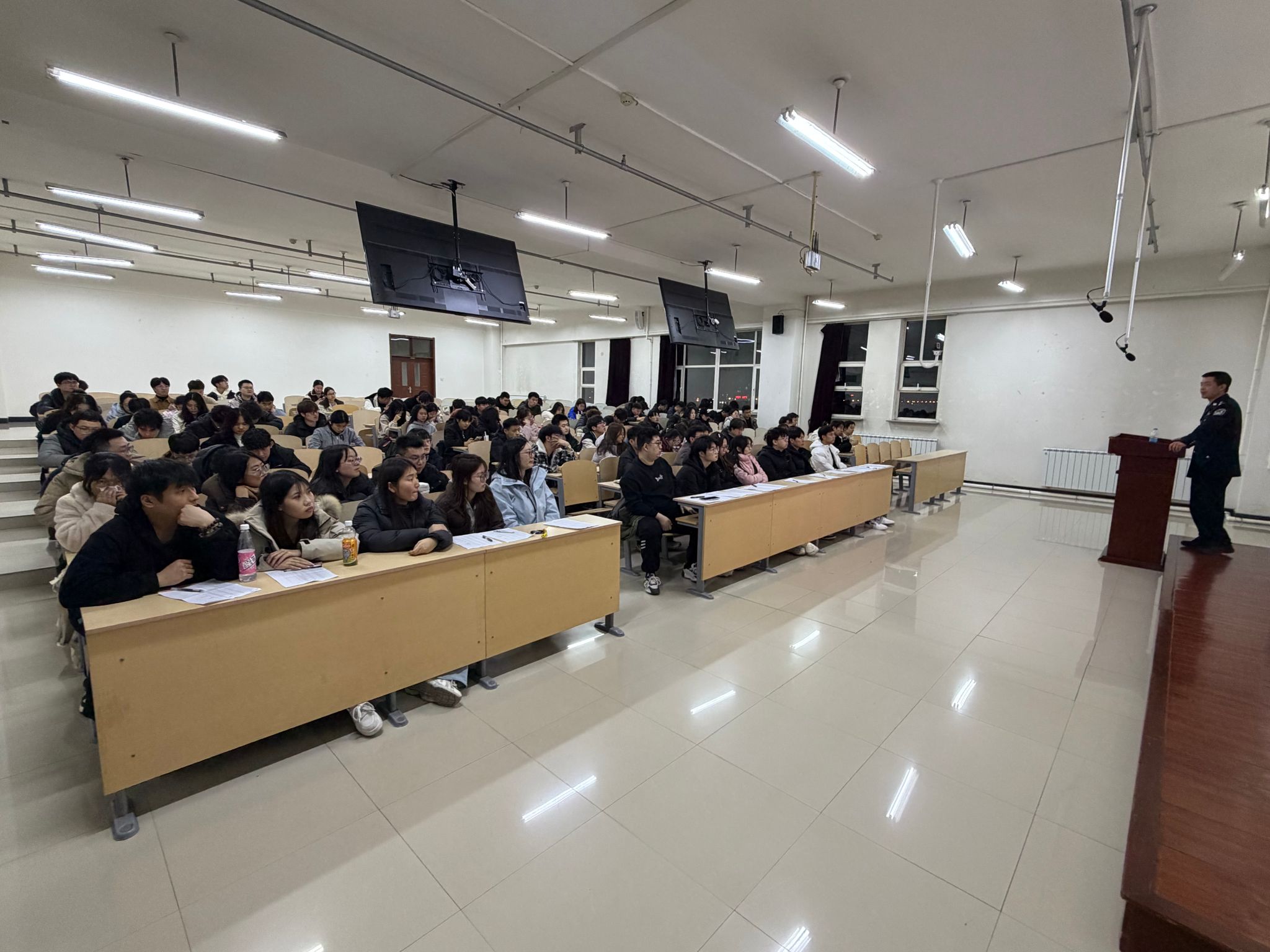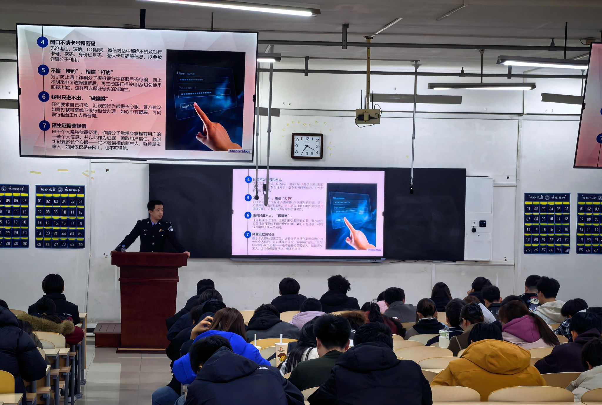 此次宣讲以“案例+解析+提醒”的形式,让反诈知识真正入脑入心。刘识邈所长结合刷单返利、虚假投资理财、冒充客服退款、游戏账号交易、网恋交友、冒充公检法、校园贷等高发诈骗真实案例,围绕当前电信网络诈骗的新型手段、典型类型及防范要点,展开全面系统讲解,深入揭露诈骗分子的作案手法、话术套路及受害群体特征,帮助学生更直观地认清诈骗危害。他重点强调了“三不一多”反诈原则:不轻信、不透露、不转账、多核实,若遭遇诈骗第一时间拨打96110报警。同时,详细讲解了国家反诈中心APP的使用方法,以及遭遇诈骗后的正确处置流程,切实筑牢学生反诈“思想防线”和“技能防线”。
