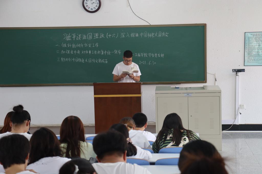 工商管理学院学生党支部于6月30日下午两点在耘慧219开展主题教育活动。本次会议由沈国义主持,主题为《习近平谈治国理政》之深入推进中国特色大国外交。