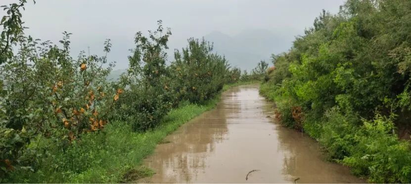 7月16日,李民同学考虑到水资源对山林果园的严重影响,于是他对该村的水利工程展开了连续两天的细致的走访调查。据了解,该山林果园覆盖面积广阔,果树种植以山走势,分布较为分散。大量的果树灌溉所需水量巨大,为保证果树的成活率,皇迷村在山区深部依山而建了两座环套式水库,其蓄水量足以保证大范围的果树灌溉用水。因水库修建海拔高于山林果园,所以果园的灌溉依靠水压便可完成,做到了环保经济一体化。但皇迷村四周环山,山体陡峭,在连续强降雨的自然条件下易出现泥石流、滑坡等问题。为了防止此类病害的产生,村民们在山林果园修建了引水渠、防洪坝和堤坝等,可有效拦截排水并将排水引流到山涧河谷,防止山洪的产生。同时河谷内采取挖深筑堤的措施,避免洪水淹没两侧耕地及村民房屋,对村民的生命财产安全造成威胁。在调查结束后,因连日降雨,一些道路泥泞不堪,他的鞋子已满是泥渍,衣服也已被雨水打湿,但他这趟收获满满,所有的付出都是值得的。